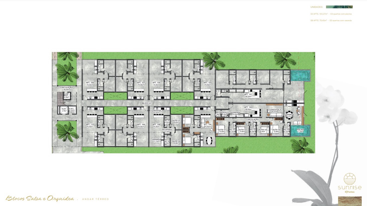 Unidades: 268 apartamentos, distribuídos com equilíbrio entre exclusividade e comunidade